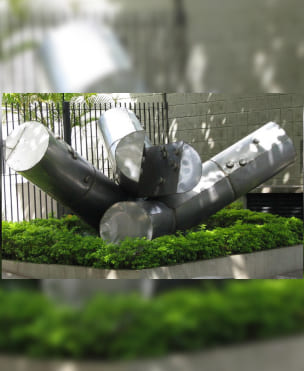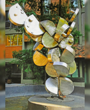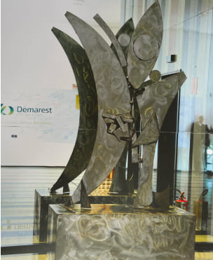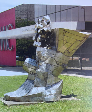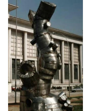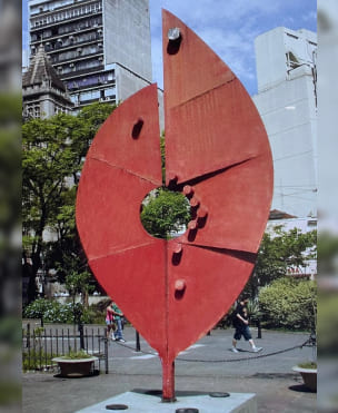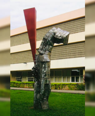 Esses materiais são transformados em formas abstrato-expressionistas por meio de cortes, soldas, lixas e pintura. Também realizou fundições em bronze de menores dimensões. Engajado na integração entre arte e arquitetura, estabeleceu parcerias com urbanistas e construtoras, contribuindo para a valorização da arte no espaço público.